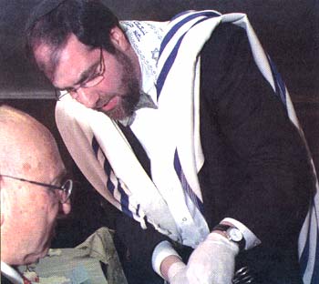 might be his 15,000th brit (give or take a dozen). In blazer and bowtie, tzizit